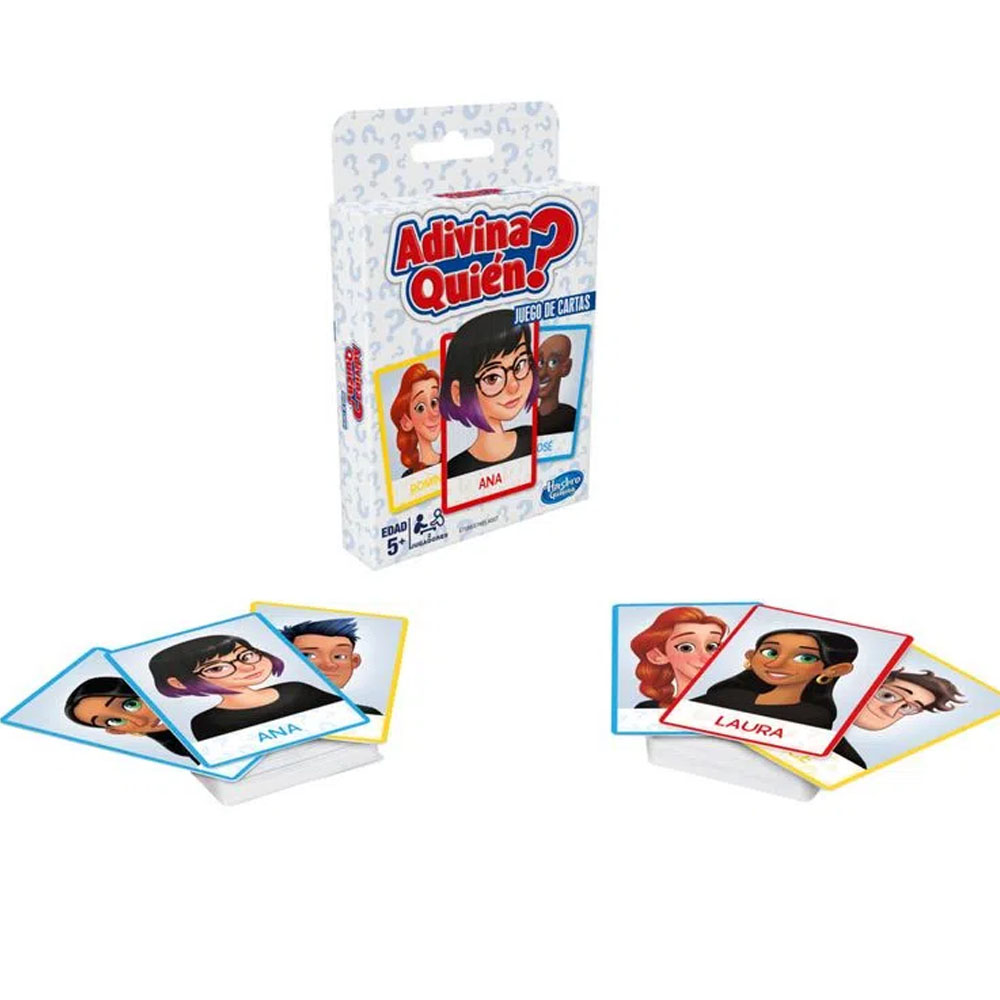 ¡Juega a Adivina Quién? pero con cartas! En esta versión del juego Adivina Quién?, los jugadores disponen sus cartas de personajes delante de sí y toman una carta misteriosa. Después se hacen preguntas de sí o no para tratar de adivinar el personaje misterioso de su oponente. Cuando creen saber cuál el personaje misterioso de su oponente, los jugadores adivinan. Quien adivina correctamente, gana el juego. Si te equivocas, ¡pierdes! Este juego de cartas rápido de jugar es una manera práctica de llevar el juego Adivina Quién? en un viaje o a la casa de tus amigos. Hasbro Gaming y todos los términos relacionados son marcas de comercio de Hasbro.