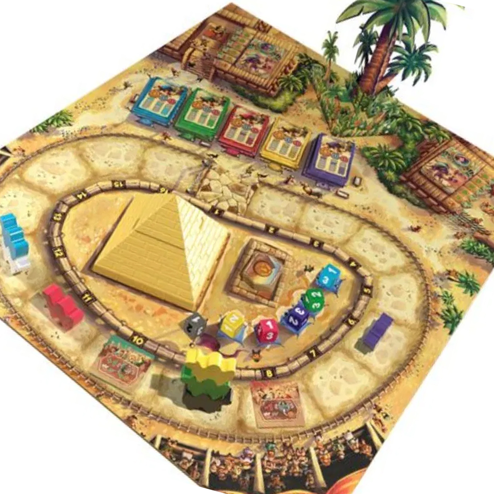 ¡Uno de los mejores juegos de apuestas y carreras de la historia!Esta nueva versión mejorada del juego Camel Up incluye una pirámide de plástico muy resistente, un tablero precioso con una palmera en 3 dimensiones que te hará sumergirte de lleno en esta carrera por el desierto y nuevas reglas, como los 2 camellos corredores que se han equivocado de dirección y están corriendo en la dirección opuesta, estorbando a los demás.
