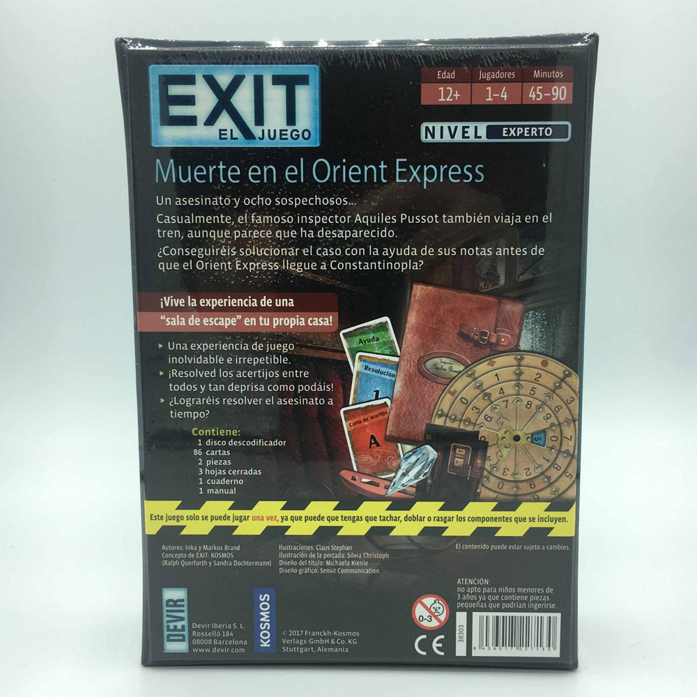 Un juego del Escape Room de Tablero más premiado del mercado. En esta nueva entrega reviviréis la clásica historia de asesinato en el Orient Express. Una carrera contrarreloj para resolver el misterio antes de que el tren llegue a su destino. ¿Serás capaz de atrapar el asesino antes de que escape del Orient Express? Esta nueva aventura de Exit es de dificultad experto.