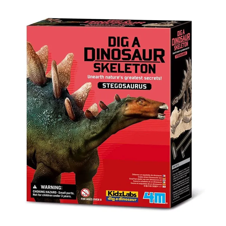 Juega a ser un paleontólogo destacado excavando los huesos de un dinosaurio que vagaba por la tierra hace millones de años con este kit de excavación de esqueletos de estegosaurio de 4M Kidz Labs. Una vez que descubras el esqueleto de dinosaurio enterrado, podrás juntar las piezas y hacer un modelo impresionante de un estegosaurio.