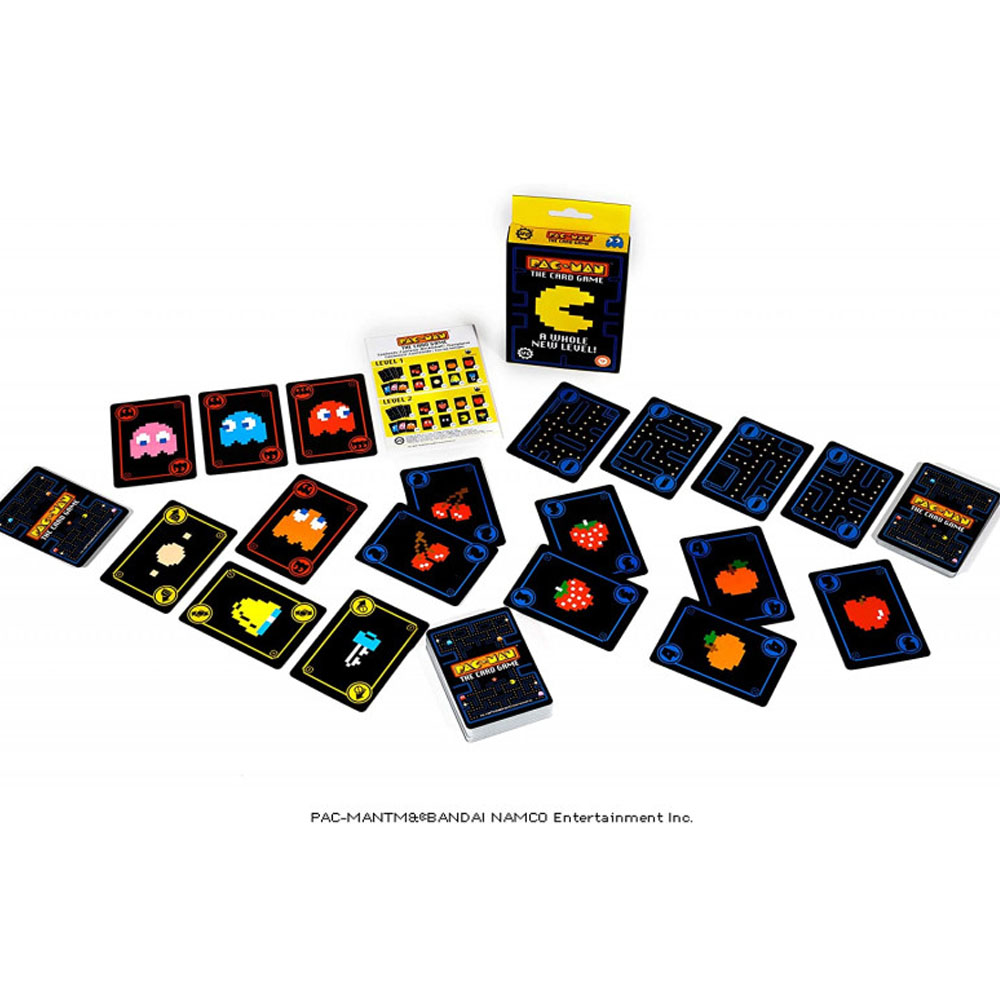 Tu objetivo es conseguir la mayor cantidad de puntos sin ser noqueado por fantasmas. Las tarjetas de frutas y PAC-DOT valen puntos. Las cartas de potenciadores tienen reglas especiales, como que dos jugadores intercambien manos. ¡Y tres cartas fantasmas te sacarán del juego!