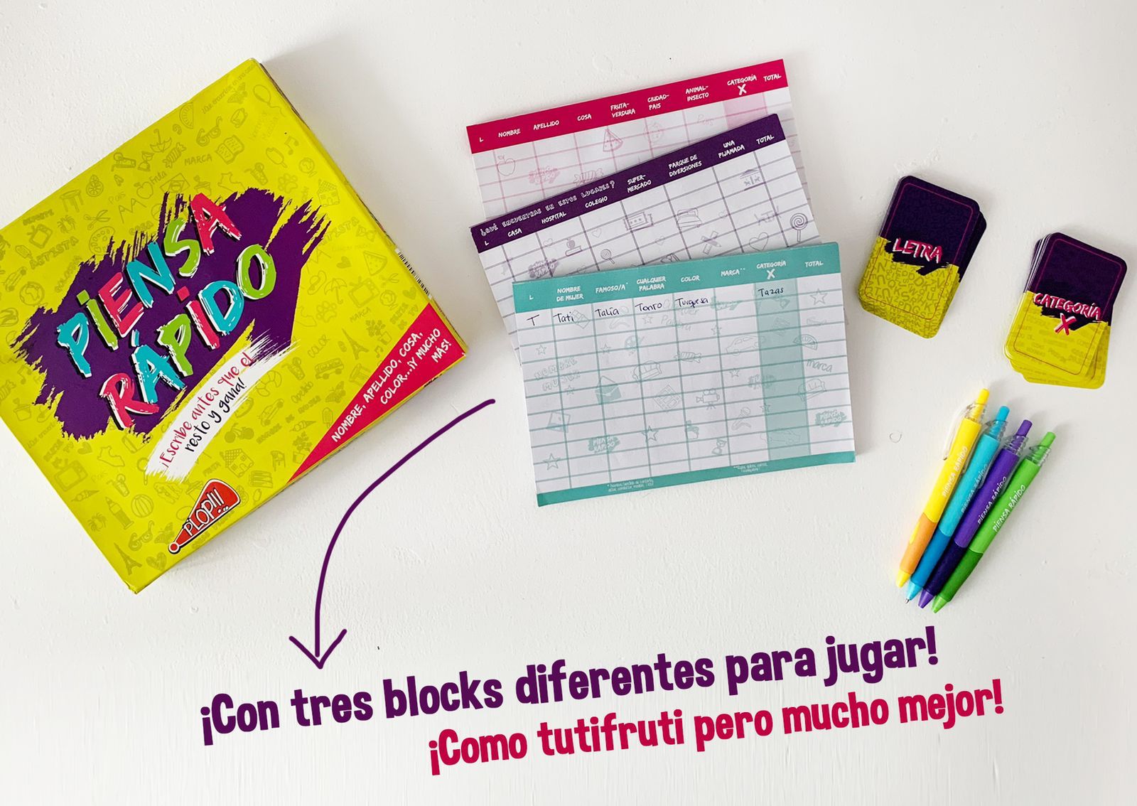 ¿Eres amante de jugar Tutti Frutti? Piensa Rápido es un increíble juego de mesa con la misma dinámica y algunas variantes para hacerlo más divertido aún.