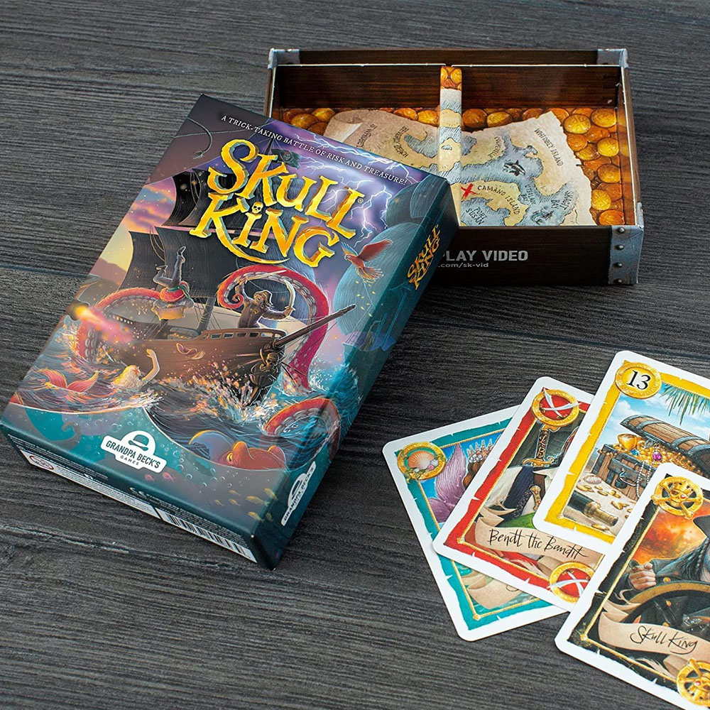 Skull King es un juego de cartas que no puede faltar en ninguna ludoteca. Ideal para grupos de todos los tamaños, la facilidad de sus reglas y la profundidad de su estrategia enamorarán a aficionados esporádicos y a los más jugones. ¿Sois lo bastante valientes para uniros a la tripulación? Subid a bordo y cantad “¡Ron! ¡Ron! ¡Ron!”