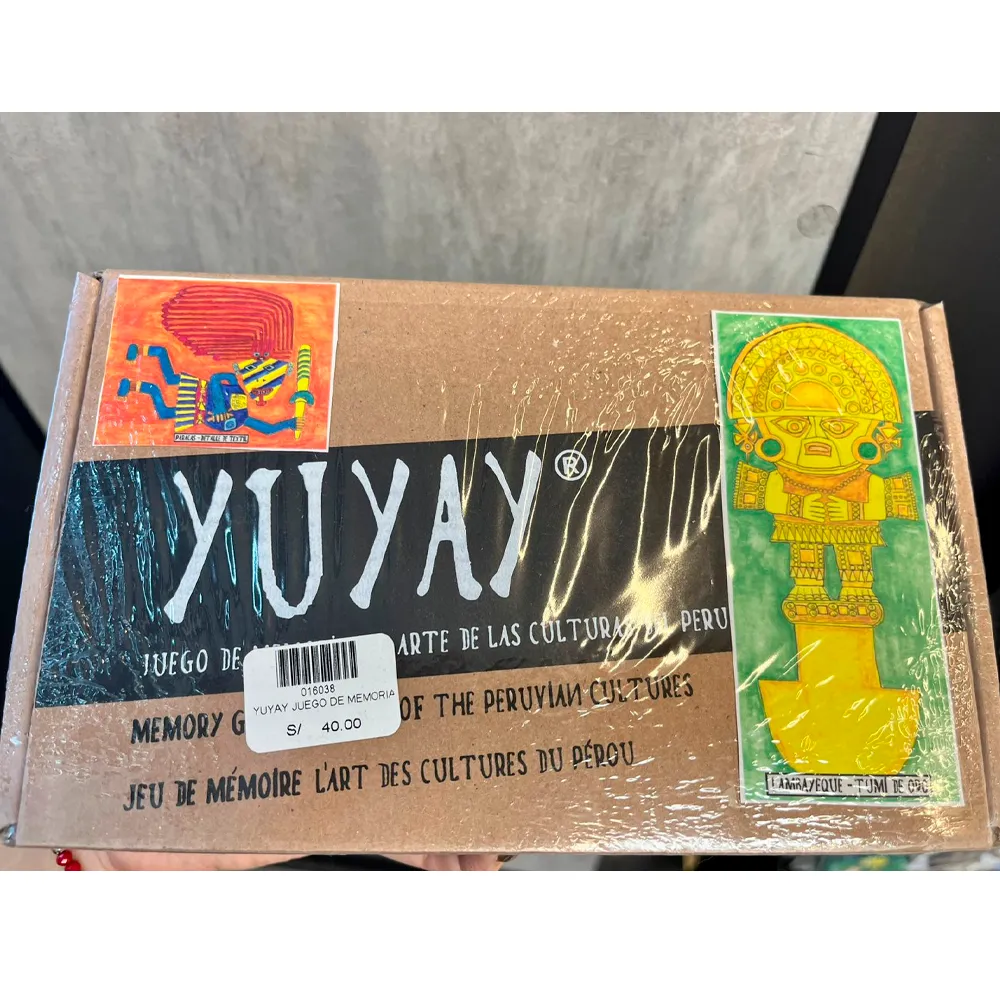 Yuyay, el tradicional juego de memoria inspirado en el arte de esta bella patria, está diseñado para que todas y todos viajen en el tiempo al Perú precolombino. Yuyay puede ser jugado a partir de los 4 años, en solitario o por grupos de hasta 6 jugadores. Consta de 60 tarjetas y de un libro con el detalle de los años en que las 25 culturas desarrolladas evolucionaron, así como los motivos por los que destacaron, su ubicación geográfica, economía y estructura social.